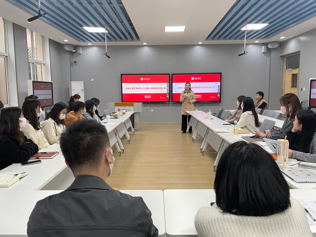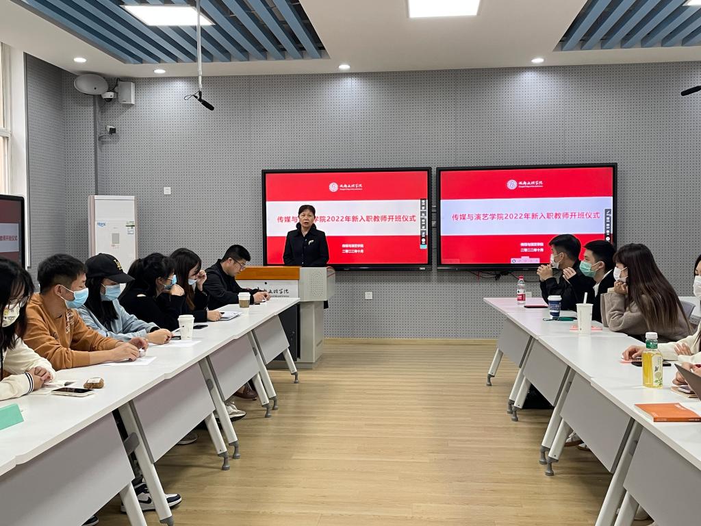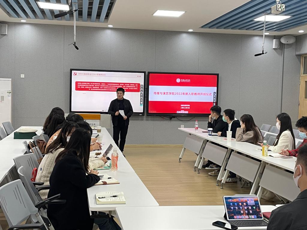 根据成都文理学院《关于开展2022年新进教师校本培训的通知》文件精神,结合学院工作实际,传媒与演艺学院于2022年10月13日开展新进教师培训。培训采取线上线下相结合的形式,传媒与演艺学院院长陈燕、学工办主任李界辰、实验实训中心主任刘坤赑出席此次培训会,学院新进教师及全体辅导员参与此次培训,会议由党总支副书记韩杰主持。