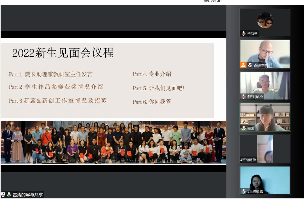 最后的专业介绍和师生面对面环节,广播电视学和广播电视编导两个专业分开进行。教研室雷涛主任和苏宇思副主任分别负责广播电视学和广播电视编导的专业情况介绍,他们在分会议室中,面对本专业新生具体说明专业的具体培养方案、培养过程和培养要求,详细解读了课程设置及要求与注意事项、培养过程中关键的阶段、专业实践规定等,以帮助新生同学更好地明确培养目标和培养要求,指导同学们制定培养计划、做好学业规划。负责两个专业授课的师生面对面是本次专业见面活动的高潮,每位老师开启摄像头逐一向新生进行了自我介绍,讲述个人学科背景及教授课程,并提出一些学习的建议及寄语。广电专业资深教授王永刚老师在交流中用优秀学长的奋斗经历激励大家,其他老师们或分析所授课程的性质特点、或讲解课程在学科体系中的重要性、或对新生同学的提出大学寄语,老师们都希望新生在见面会后,能在接下来的线上线下学习中做好规划、找好适合自己的路,乘风破浪、扬帆起航,在未来四年中收获精彩人生!