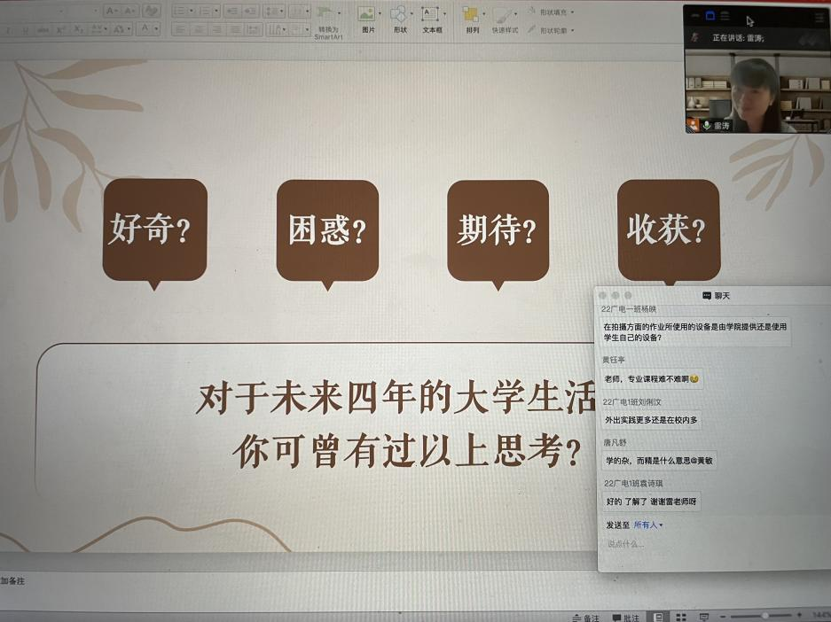 本次线上会议是疫情防控形势下的新举措,通过新生专业教育活动的成功举办,不仅加强了新生对学校及学院的基本了解,解决了新生入校前的各种困惑,使教师和新生之间有了进一步的了解,新生们对未来四年的学习议程也有了较清晰的认识,也为广播电视教研室后续教学工作的顺利开展打下了坚实的基础。