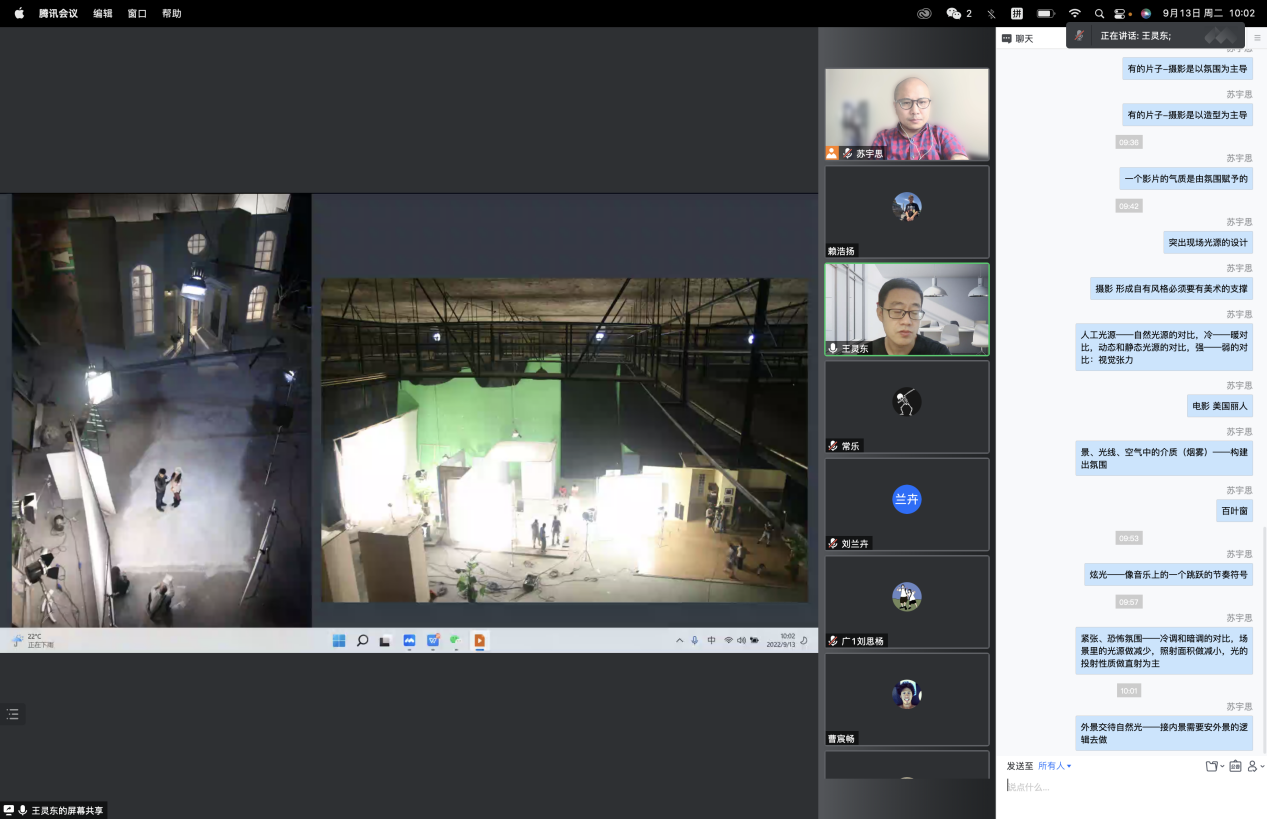 上午第一场讲座的王灵东副教授首先结合浙江传媒学院电视艺术学院摄影系的专业设置和人才培养与学生就业几个板块做了简练的介绍分享,提出了融合媒体时代学生就业的多元化须与专业培养高度结合的培养理念。与此同时,王老师也介绍了浙传艺术硕士学位的招生考试与人才培养情况,鼓励文理学生报考浙传攻读硕士。接下来,王灵东副教授从影视摄影造型基础到影视灯光照明技术循序渐进就场景的气氛设计和氛围的营造,从摄影创作以氛围为主导的拍摄和以造型为主导的拍摄两类创作方向中结合光源、光线投射角度、色温、色彩、调度与美术等阐述了棚内虚拟仿真拍摄技术的前置问题,分享了业内知名制作公司杭州博采传媒用全程虚拟制片在棚内拍摄的电影短片作品《诞辰》全过程,讲解了由中国自主开发的LED大屏幕上摄影机可以直接用具有景深感的形式拍摄出无摩尔纹的画面,这是中国进入电影工业化技术进程中的风向标,还讲解了LED虚拟大屏幕的主场景内主光、副光、色温、色彩技术要素在与实景结合拍摄中人工光源照射在演员身体上与之匹配的技术实现和布光方法。王老师介绍了他在cine tracer软件的灵感基础上研发出符合中国内地制片拍摄的电影摄影虚拟灯光软件,此软件设计与开发也是浙江传媒学院和浙江省广电集团的国家项目,目前在第二期软件的测试应用中。