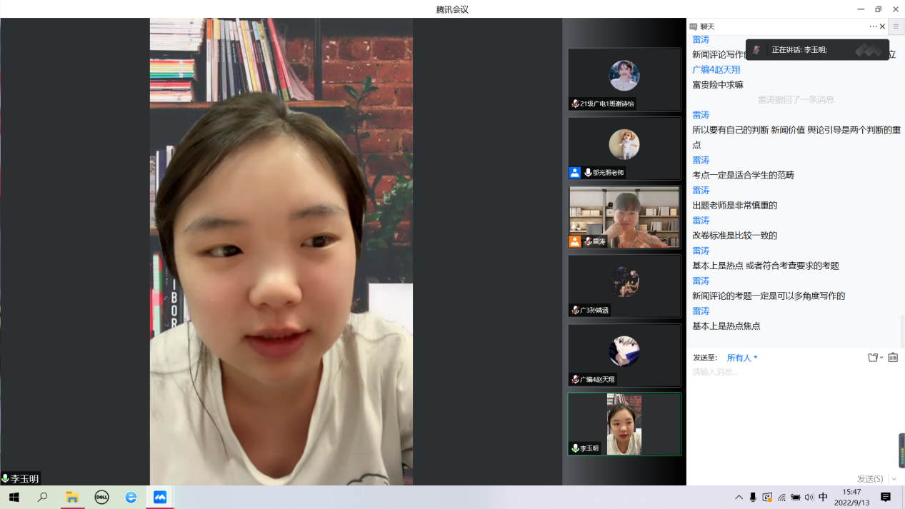 通过今天的两场高水准的线上讲座,广播电视编导和广播电视学的全体同学对专业学习和学业规划有了更多思考与感悟,把握行业需求方向,不断提升自己的专业能力,瞄准目标院校,切实加强理论和实务积累,传演学子面对这样难得的专业交流机会都体现出积极认真的学习态度和孜孜以求的钻研精神,其中广电教研室的专业老师也从中获益匪浅。