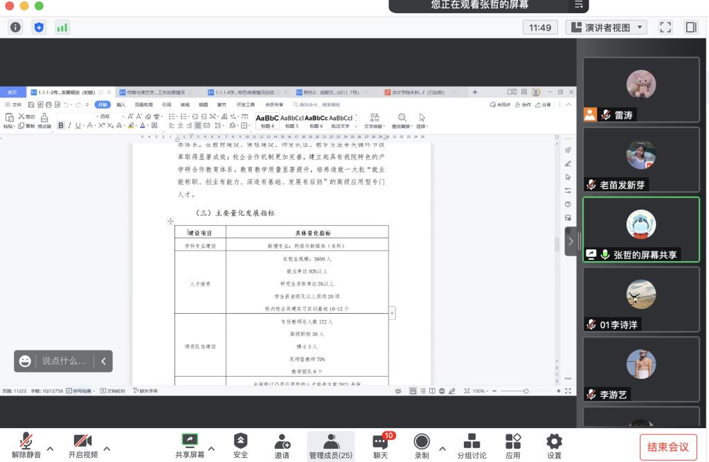 2022年7月19日,为响应国家防疫要求,积极准备迎接本科教学合格评估的相关工作广播电视教研室以线上方式召开暑期工作推动会,广播电视教研室全体教师共25人参会。会议由广播电视教研室主任雷涛老师主持。