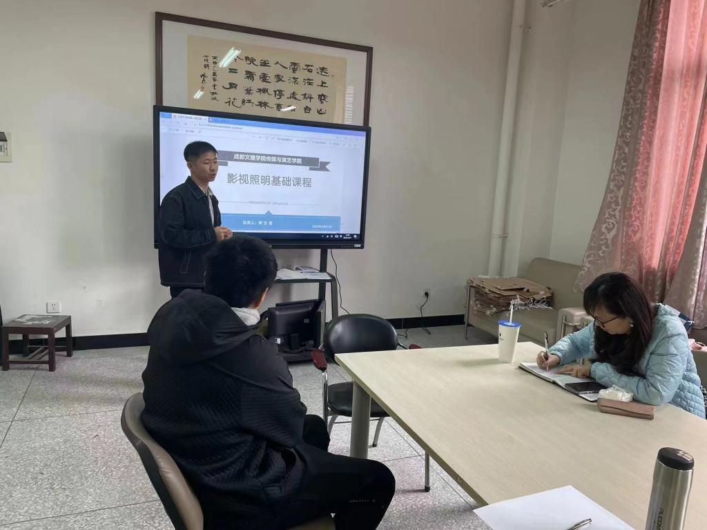 3月31日下午,根据学校教务部门的要求和安排,广电教研室本学期学期第一次教师说课、磨课活动在艺术楼B203开展。本次说课由影视灯光课程组的樊生富老师,影视制片管理课程组的查宇、李诗洋老师共同完成。参与活动的还有院长助理雷涛、教研室副主任苏宇思和李诗卉老师。整个说课、磨课分为讲解、交流和点评三个阶段,历时两个半小时。