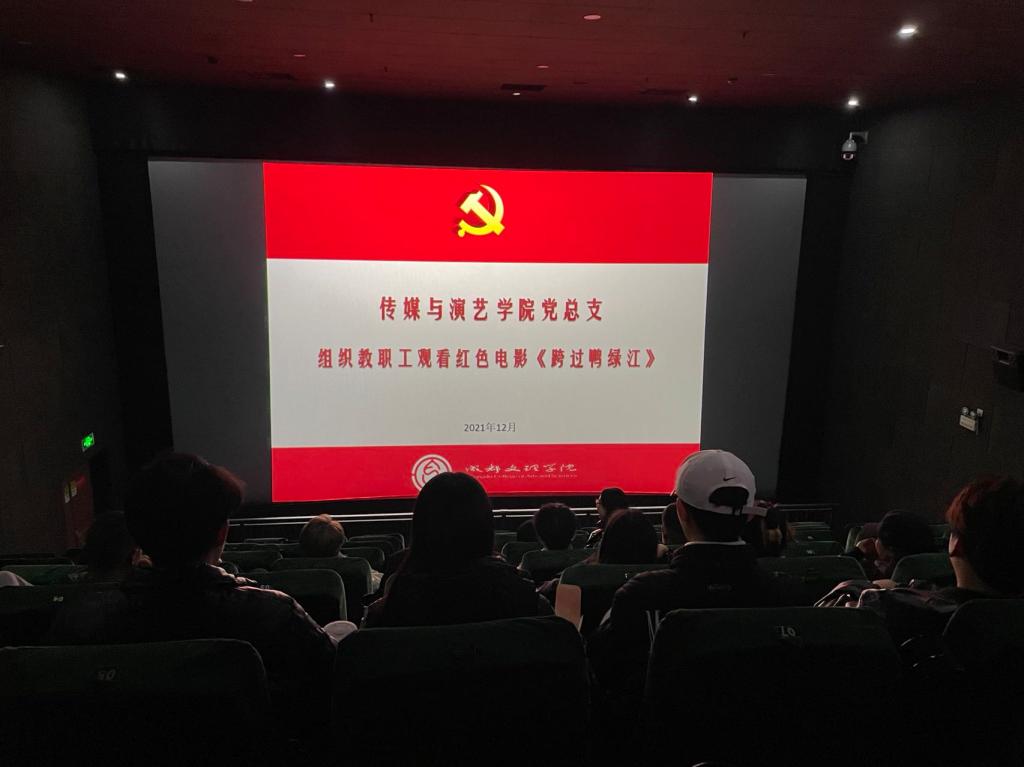 为了进一步学习宣传贯彻党的十九届六中全会精神,落实省委十一届十次全会部署,结合爱国主义教育、党史学习教育,近日,传媒与演艺学院党总支组织“观看红色主题电影,弘扬爱国主义精神”主题活动,组织师生观看了红色主题电影《跨过鸭绿江》。