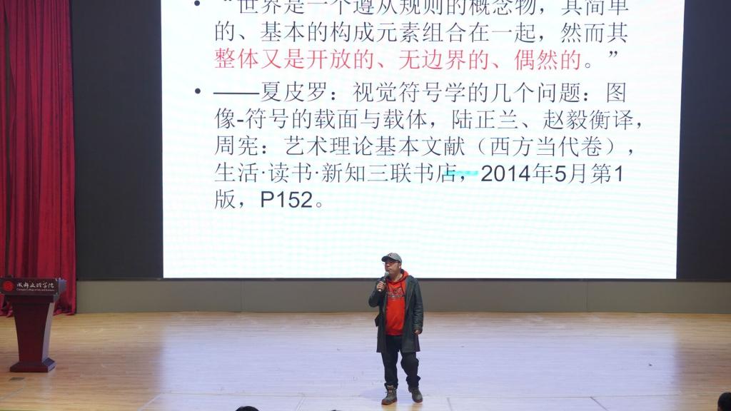 李立老师通过引用“世界是一个遵从规则的概念物、基本的得构成元素组合在一起、然而其整体又是开放的、无边界的、偶然的。”为同学们深入讲解了电影是什么。讲解了通过大众文化研究和传媒艺术学得到的电影科技论,从电影内部的探讨到电影外部的展示,从传媒研究到视觉文化研究。以及现中国电影的四大研究:中国电影学派、电影工业美学、电影共同体美学、电影伦理学。李立老师精彩的演讲赢得了台下的阵阵掌声。