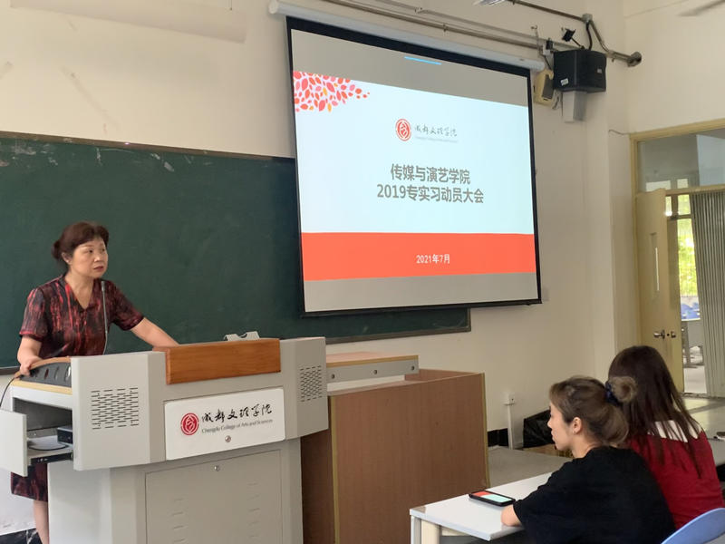 7月28日中午,传媒与演艺学院于教学楼B101召开2022届专科毕业生实习动员大会,传媒与演艺学院院长陈燕、学工办主任韩杰、辅导员曾瀚奇、教学秘书刘璐、指导老师李曼、龚宸、张盼及2022届所有专科毕业生参会。