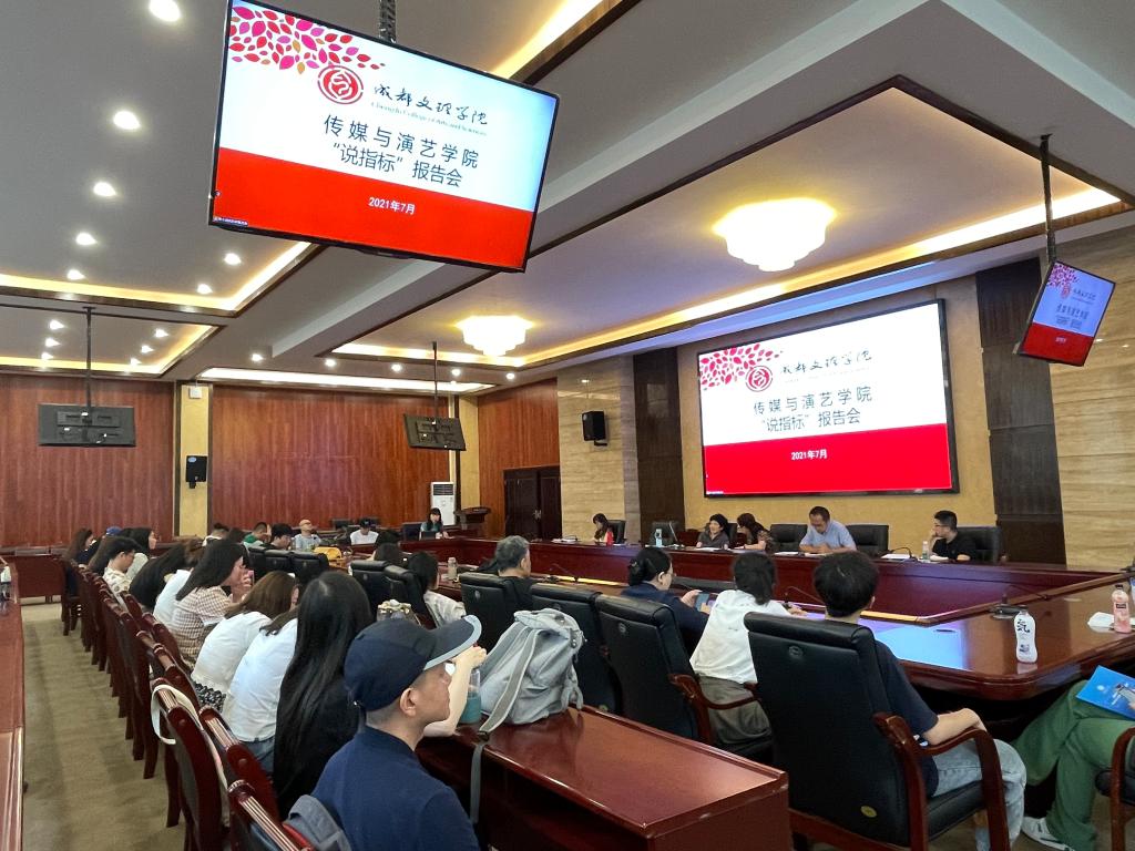 7月9日上午10时,传媒与演艺学院在学工部211会议室举行2021年“说指标”活动,传媒与演艺学院院长陈燕、党总支书记刘刚、副院长马炼、院长助理雷涛、学工办主任韩杰、播音与主持教研室主任郭悦昆及全体教职员工参加此次活动。