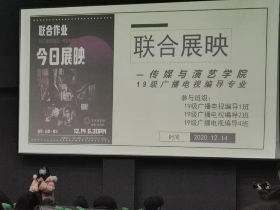 传媒与演艺学院2019级广播电视编导专业联合作业展映活动与2020年12月14日和12月17日晚6时30分于成都文理学院放映厅举办。出席本次联合作业展映活动的有广播电视编导教研室主任雷涛,副主任苏宇思,任课教师牛永岚、蒲融、苗宝局、武智超、李召洋、陈昊、李诗洋以及2019级广播电视编导五个班的全体同学。
