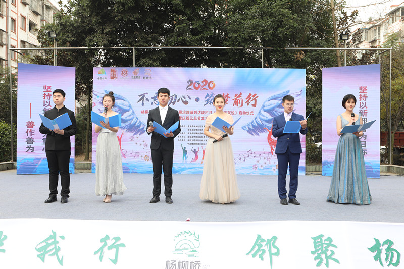 12月27日上午10时,20余名传媒与演艺学院教师党员和学生党员到杨柳桥小区参加首档社区发展治理系列访谈栏目《“友”话就说》拍摄的启动仪式。出席启动仪式的领导有成都文理学院传媒与演艺学院党总支书记刘刚,金堂县城乡社区发展治理委员会科长卢思旭,赵镇杨柳桥社区党委书记李年超,副书记易德长,金堂县梦想社区服务中心理事长杨萌等。