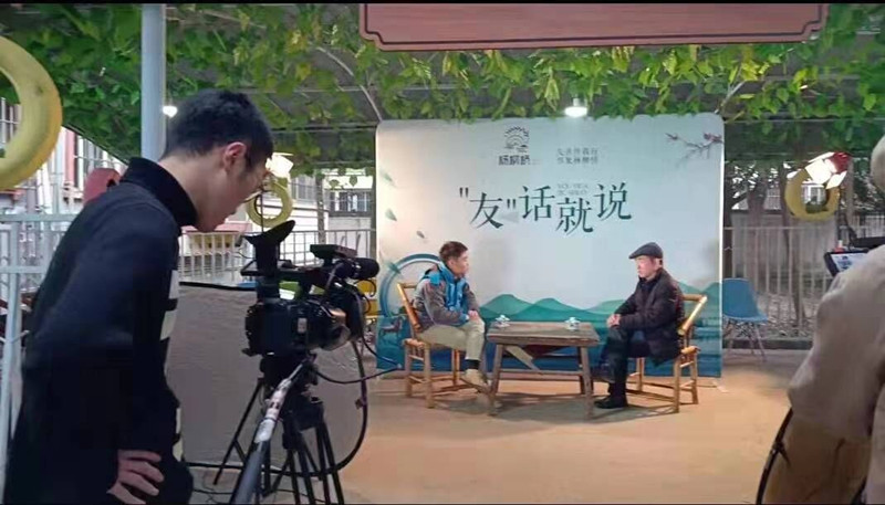 《“友”话就说》栏目是社区发展治理系列访谈栏目,通过面对面访谈和外景拍摄两种形式,深入辖区进行实地采访拍摄,从身边寻找那些普通而又不平常的人来讲述一段不可磨灭的记忆,说出他们自己内心的感受,让更多的人参与到社区发展治理中来。传媒与演艺学院党总支组织在校学生党员参与该栏目的前期拍摄、后期剪辑等工作,使学生党员在实践中接触社会,在活动中锻炼能力,将知识应用于实践,培养他们的社会责任感。最后,到会领导上台在LED大屏幕上共同按下启动键,《"友"话就说》开机仪式正式启动。启动仪式开始后,传媒与演艺学院学子也给社区居民带去了精彩的朗诵和歌曲节目。