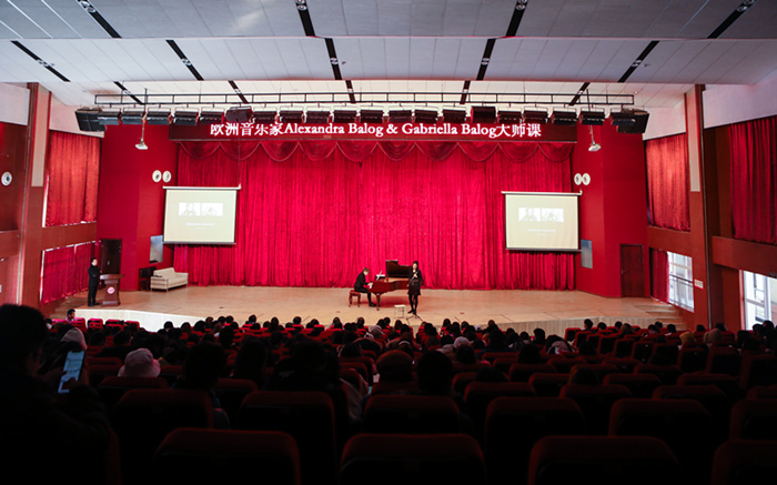 12月9日下午2时,传媒与演艺学院在文理讲堂顺利开办欧洲音乐家Alexandra Balog&Gabriella Balog大师课,同时带了一场精彩的音乐会。传媒与演艺学院院长陈燕,党总支书记刘刚,学工办主任韩杰,传媒与演艺学院音乐表演专业全体教师、全体辅导员以及传演学子参加出席。