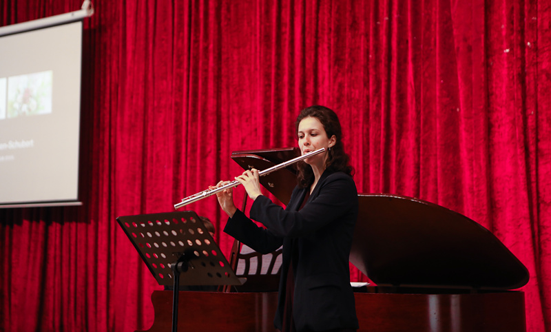 主持人首先介绍此次大师课的两位老师:Alexandra Balog,欧洲青年长笛演奏家,李斯特音乐学院硕士,德国Jeng爱乐乐团首席长笛;Gabriella Balog,欧洲青年钢琴演奏家,英国皇家音乐学院硕士,巴托克国际钢琴比赛第一名获得者,Bozsok音乐节音乐总监。