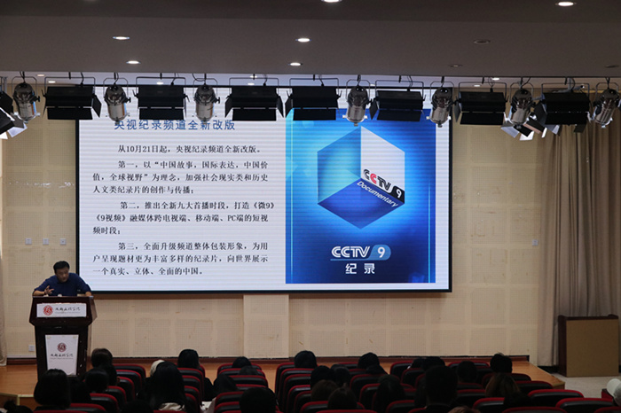 在讲座中,王永刚教授采用视频加图文讲解的教学方法,轻松愉悦的氛围加上精彩的演讲使得同学们深刻理解了纪录片的发展前景以及“正能量、高品质、创新性、年轻化”的全新发展理念。通过央视九套改版、《了不起的匠人》《如果国宝会说话》等案例分析使同学们深切认识到了纪录片的发展动向与大投入、大制作、大效应的发展态势。王永刚教授特别介绍了纪录片年轻化的发展趋势和高新技术在纪录片创作中的重要表现。这些内容的讲解,对同学们更新创作理念,增强学习和掌握高新技术的紧迫性,起到了积极的作用。