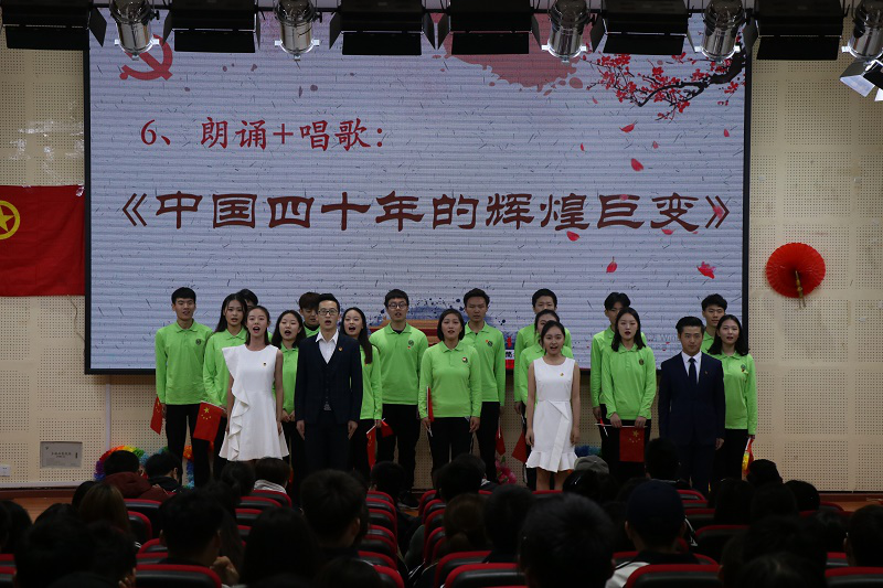 本次观摩会的节目形式多种多样,由全体师生齐唱国歌缓缓拉开帷幕。舞蹈《The light of reform》以三种不同的舞蹈形式向众人展示着改革开放后人民多元的文化与艺术生活;相声《爱国爱党》表达了对党员先烈的崇敬,赞扬了革命烈士用血肉之躯保家卫国的魄气;一首《中华武魂》与一曲《将军令》挥洒了英雄气如山,书写了江河卷巨澜;《光阴的故事》诠释了改革开放的成功与魅力,它影响着一代代人奋勇前进;《中国四十年的辉煌巨变》高度赞扬了改革开放四十周年取得的举世瞩目的成绩,向众描绘了一个勤劳的民族,一个壮丽的中国。由全体学生共同演唱的团歌更是好评如潮,为观摩会画上了圆满的句号。