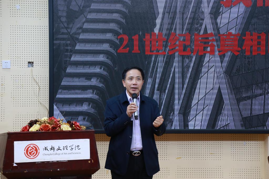 10月18日14时30分,传媒学院于学工部105会议室举办以“我们的世界—21世纪后真相时代纪实摄影的变迁”为主题的摄影讲座。传媒学院院长刘吾康、党总支书记刘刚、副院长李晓川、吴双,传媒学院各教研室教师、全体辅导员出席活动。近三百名传媒学子和来自全校各学院的摄影爱好者参加了本次讲座。