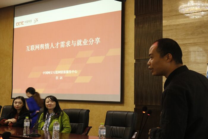 主讲嘉宾任远围绕互联网舆情人才需求与就业前景,分别讲解了舆情人才需求、职业机遇、认识网络舆情以及毕业准备工作等主要内容,就“我们学了什么专业?”“我们的专业有什么价值?”“所学专业可以应用于哪些行业?”等问题作出讲解。
