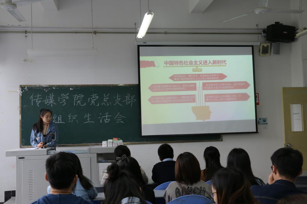 为深入学习贯彻党的十九大精神,2017年10月27日,传媒学院在教学楼B106召开了党组织生活会,出席本次会议的领导有传媒学院第二学生党支部书记、分团委书记韩杰,第一学生党支部书记章婷及全体辅导员、学生党员参加会议。