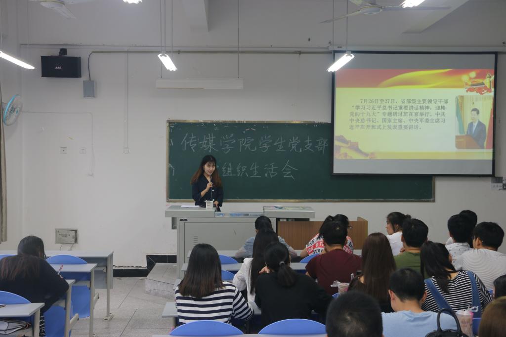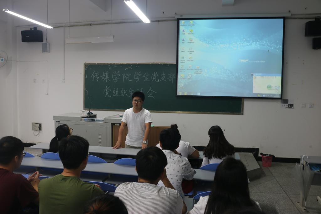 2017年9月14日,传媒学院在教学楼B102召开了本学期第一次党组织生活会,传媒学院第一学生党支部书记章婷,第二学生党支部书记、分团委书记韩杰及全体辅导员、学生党员参加会议。
