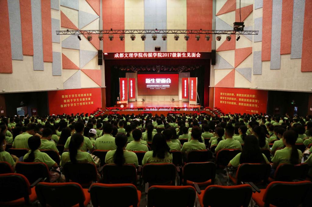 9月14日上午9时,传媒学院2017级新生见面会于星空剧场顺利举行。传媒学院院长刘吾康、党总支书记、学工办主任刘刚、副院长李晓川、吴双出席,各教研室主任、教师代表及学工办全体老师与来自全国各地的2017级新生齐聚一堂。