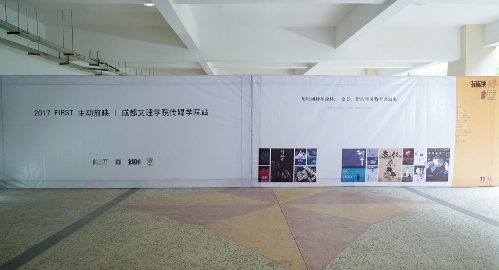5月6日上午9点30,2017第十届FIRST高校主动放映春季巡展在我校艺术楼数字放映厅拉开序幕。传媒学院刘丽、唐蜜等老师参加,观念摄影艺术家何明春以及上百名传媒学院学生、文学院学生参与此次电影展。