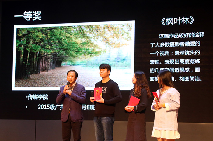 晚会通过五轮颁奖,分别颁发了一等奖3名、二等奖5名、三等奖7名、最佳人气奖1名、优秀奖15名,其间穿插了诗朗诵《梦想 现实》、歌曲串烧《喜欢你》《曾经的你》。来自传媒学院的权威和刘依杨,文学院的王诗源三人拿下一等奖。由刘吾康与李晓川为他们颁奖,并对他们的作品进行了点评。