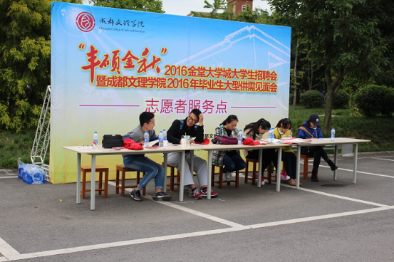 2016年10月28日,大学生招聘会暨成都文理学院2016年毕业生大型供需见面会成都文理学院星空广场开展。我院党委书记高华锦,院务委员、学生工作部部长王亚军莅临现场指导工作。此次大型人才双选会由四川省人力资源服务行业协会、四川省人才交流中心、中国成都人才市场、金堂县人力资源和社会保障局共同举办,成都文理学院承办。