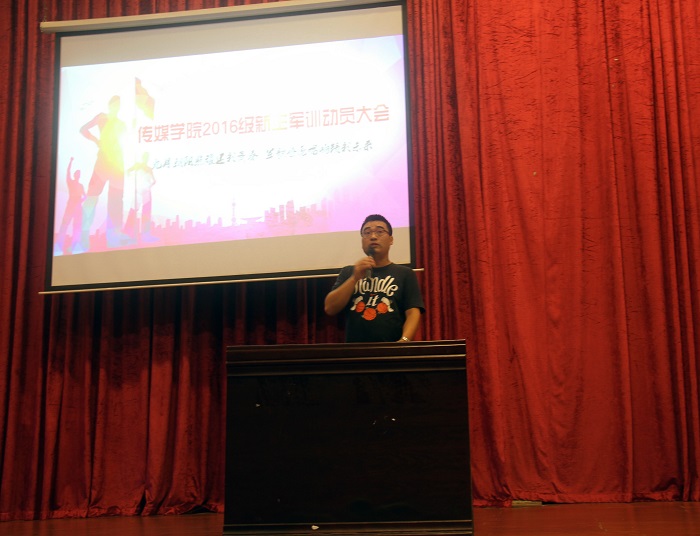 想要成为一名优秀的党员,必须要先经过严格的身体素质考核,这就要求新生们具备吃苦耐劳的精神和顽强不服输的意志,所以2016级新生的军训必不可缺。为了此次军训能够顺利开展,传媒学院总支书记、学工办主任李江主持此次2016级新生军训动员大会,为新生加油打气。会上,李江主任真诚地表达出对各位传媒学子的殷切希望。他希望此次军训大家可以打起十二分的精神,拿出自己最自豪最英勇的一面,将最好的精神面貌展现给大家,努力坚持到最后。同时也希望在30号上午的军训汇报表演上,为各位来观摩的领导们、辅导员老师们、学姐学长们奉献一场意气风发的视觉盛宴。