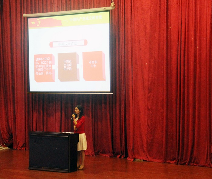 首先由党支部书记章婷对2016级新生进行入党教育。此次讲座围绕以下四个方面展开:1、中国共产党成立的背景。从中国共产党的成立历史到中国共产党对现代经济、教育、生活等方面的影响。2、新中国、新面貌。3、深入学习习近平总书记在建党95周年讲到的“不忘初心、继续前进”、“四个自信”以及“四个全面”。4、简单介绍文理校园内的中共党员。此次讲座通过精彩的演讲为2016级新生展示了一个伟大的、不可或缺的组织——中国共产党,同时也希望有更多的新生能够加入到中国共产党,成为一名优秀的党员,增强党性修养,为祖国奉献一份自己的力量。