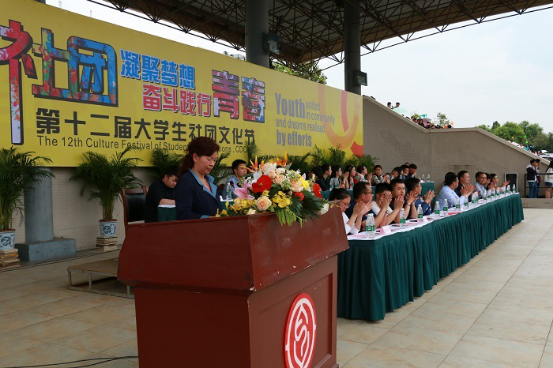 为培养学生兴趣、砥砺思想情操、提高综合素质,进一步推动成都文理学院文化活动的宏博发展,成都文理学院第十二届大学生社团文化节开幕式暨社团风采展示于4月7日14:00在金堂校区操场隆重开幕。出席本次开幕式的领导和嘉宾包括成都文理学院党委副书记骆云英、金堂川锅技校常务副校长郭大志、副校长李慧国、钟晋,成都文理学院院务委员、团委书记陈刚,学生工作部副部长杜凡,学生工作部副部长、团委副书记郑巍巍,团委办公室主任周俊霞等,以及各学院分团委书记、各社联分会指导老师。成都文理学院党委副书记骆云英为本届社团文化节致辞并宣布风采展示正式启动。