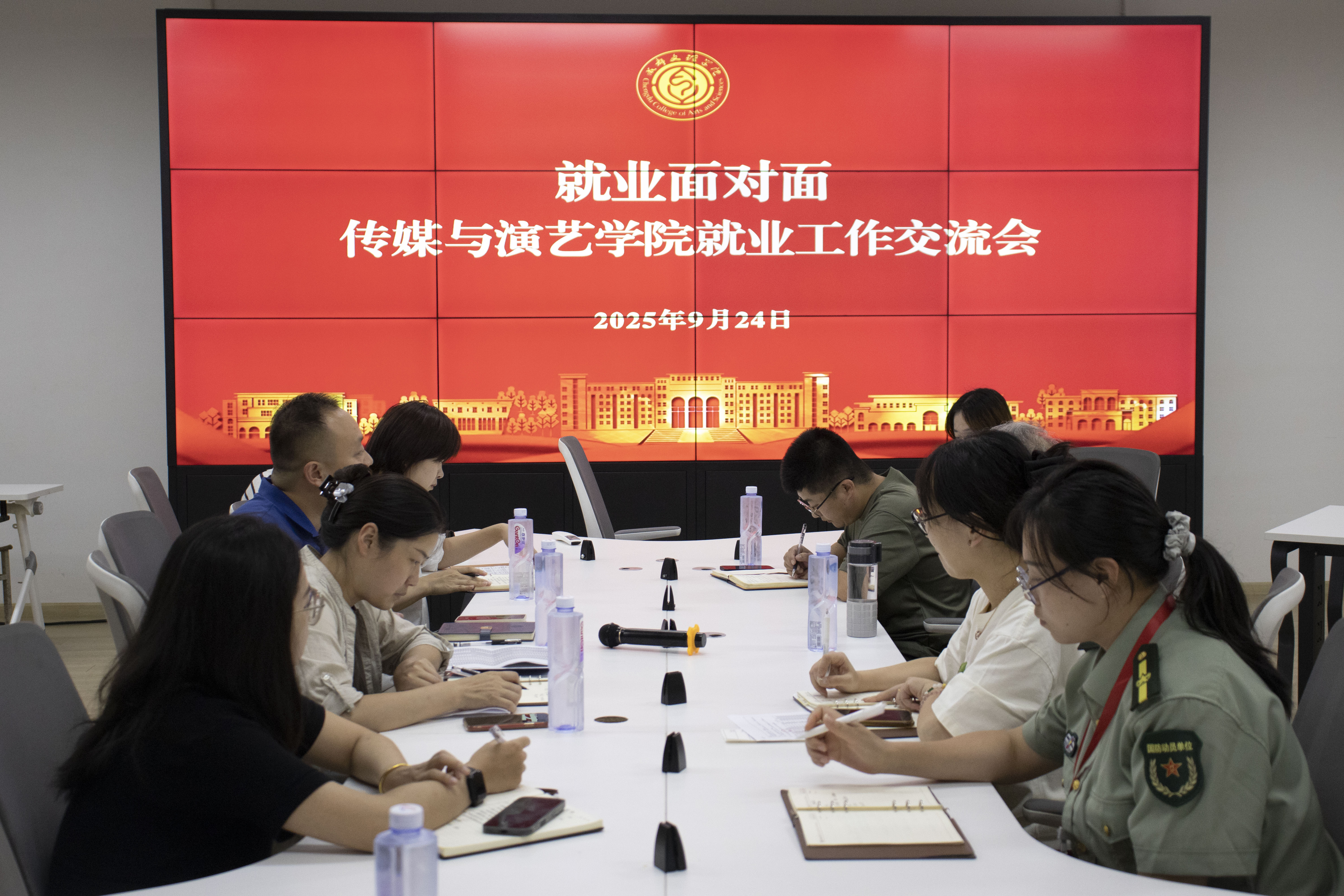 为贯彻落实党中央、国务院关于高校毕业生就业工作的决策部署,切实做好2026届毕业生就业指导与服务工作,传媒与演艺学院于2025年9月24日下午1时30分在艺术楼210B会议室召开了就业工作交流会。学工部副部长、团委书记郑巍巍,传媒与演艺学院院长许春林、党委书记韩杰、学工办主任李界辰以及就业服务中心李茹、陈娟、2025届、2026届毕业班辅导员参加会议。会议由韩杰主持。