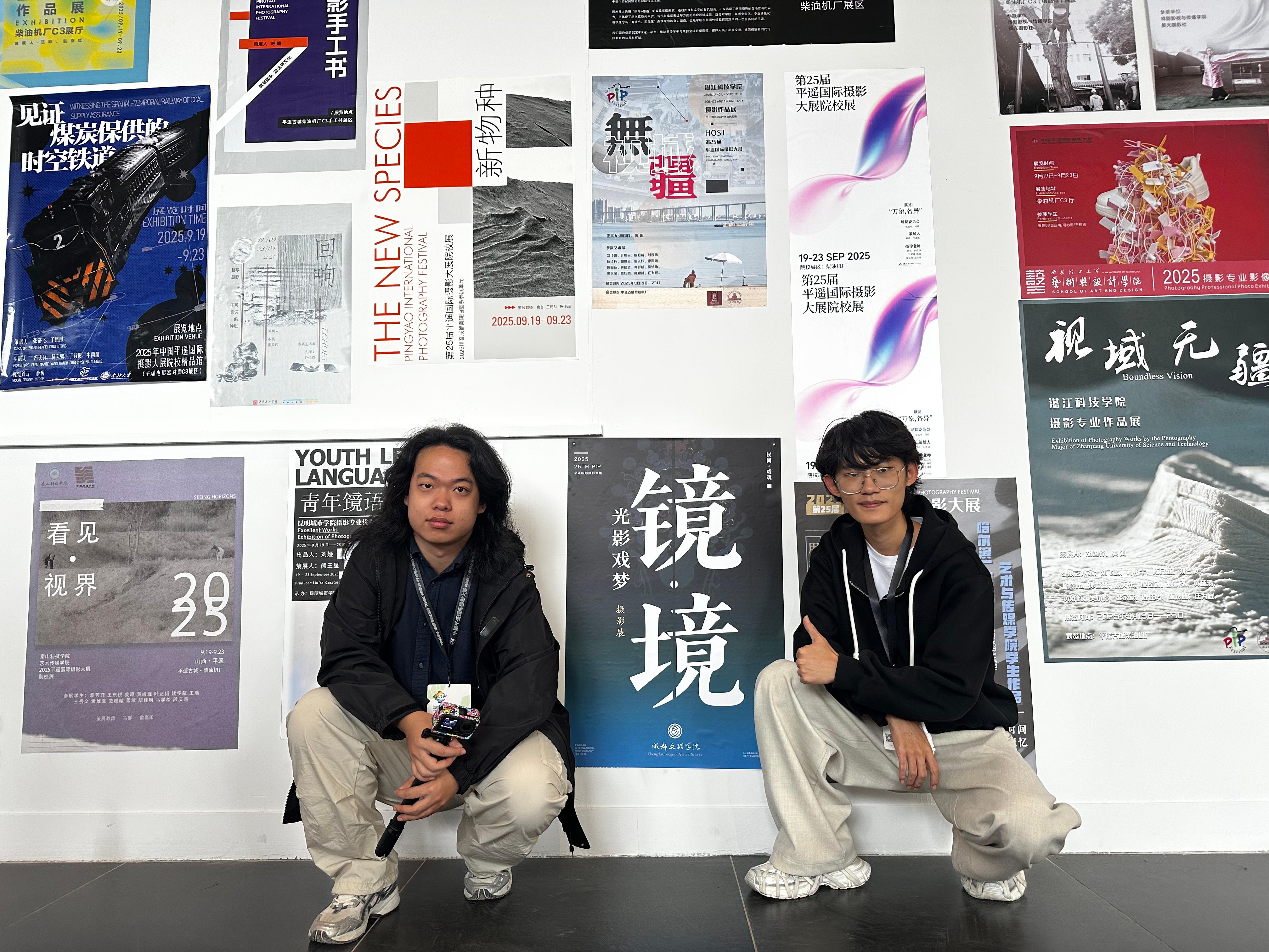 2025年9月19日,以“突破界限·智见未来”为主题的第25届平遥国际摄影大展在山西平遥古城盛大开幕。本届大展吸引了来自全球34个国家和地区的5000余名摄影师参展,展出作品超过2万幅,并有117所国内外院校参与院校板块的展览。传媒与演艺学院广播电视教研室肖光毅、蒲融老师带领2022级广播电视编导专业学生李嘉帅、李维轩赴平遥参展,其创作的《光影戏梦》系列作品成功入选院校展单元,在平遥古城柴油机厂展区正式亮相。
