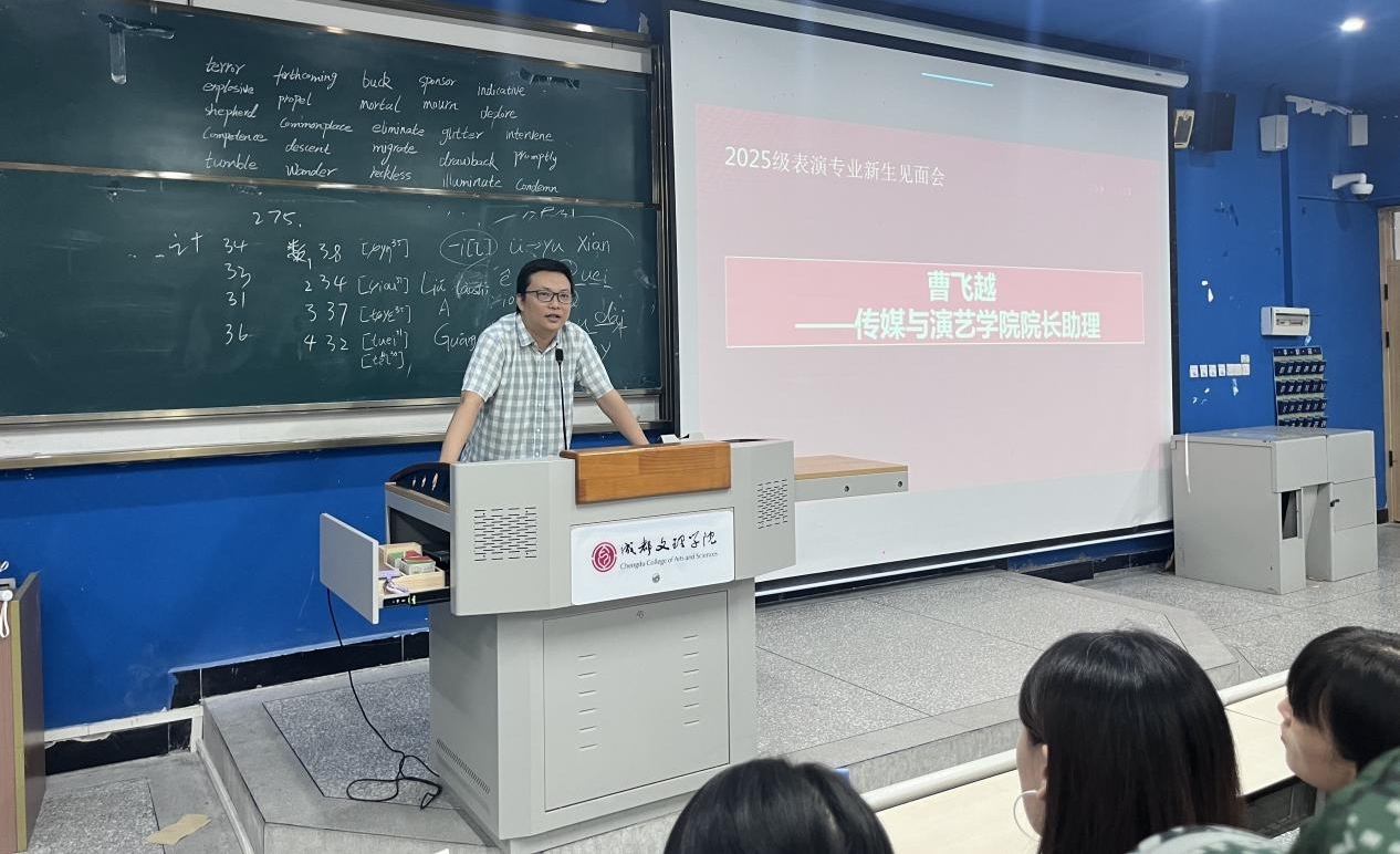 秋阳送爽,艺苑新蕊。由微影星火数字传媒产业学院主办,表演教研室承办的传媒与演艺学院表演专业2025级“新生第一课”于2025年9月17日晚在主教学楼开课。传媒与演艺学院院长许春林、院长助理曹飞越、表演教研室主任邹倩、副主任王骞及专业课教师共同参与,并特邀一级演员、原攀枝花市艺术剧院常务副院长、四川省艺术专项基金专家评委伍越老师,为新生带来戏剧创作分享,助力同学们快速融入学术氛围、筑牢专业基础。