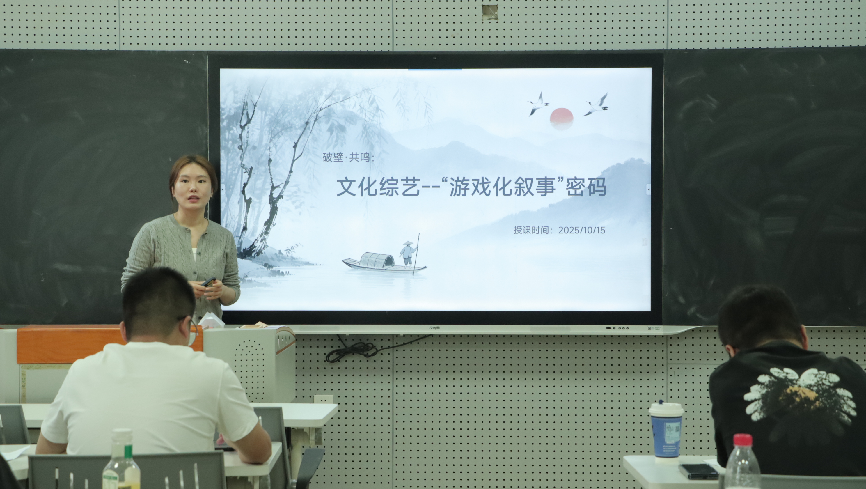 比赛过程中,参赛教师凭借扎实的专业功底与精心的教学设计,展现出鲜明的教学风格与独特的个人魅力。在《播音创作基础》中的情景再现课程展示中,张煜霖老师以《朗读者》中斯琴高娃朗读《写给母亲》的片段为切入点,引出“播读者如何将稿件情景转化并传递给受众”的核心问题。广播电视编导专业的范培莅老师则以文化综艺板块的延续来聚焦核心主题“游戏化叙事”。通过“世界观-角色扮演-任务驱动”三个密码展开对游戏底层逻辑的激活和传统文化的传播。音乐表演专业的张盼老师以曲式与作品分析中的“两个乐句组成的乐段”为课题。将声乐技能训练与文化理解深度融合,采用新颖的AI创作乐曲为教学内容注入新活力,展现了学院青年教师在教学创新方面的探索与实践。