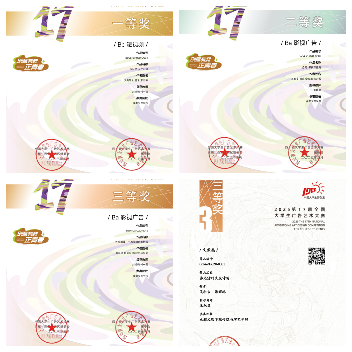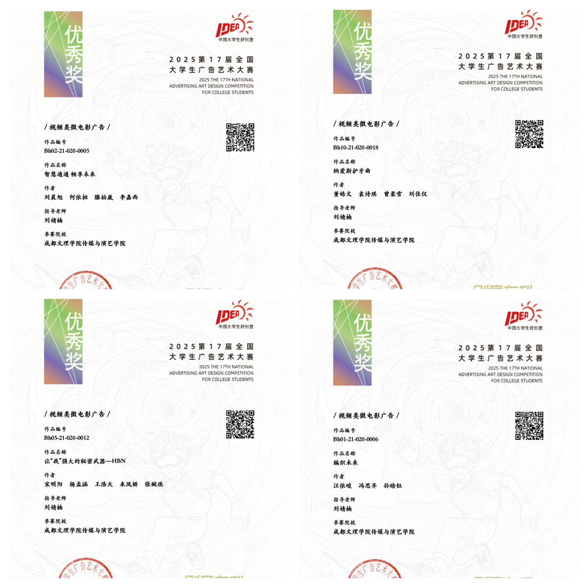 近日,第十七届全国大学生广告艺术大赛(简称“大广赛”)获奖名单正式公布,我校传媒与演艺学院师生再传捷报,共斩获国家级奖项5项、省级奖项63项,其中国家级三等奖1项,优秀奖4项,省级一等奖4项,省级二等奖9项,省级三等奖31项,优秀奖19项,奖项延续了我院在该项赛事中的稳定高水平表现,充分彰显了学院在微电影、短视频、广播与文案多元广告赛道上的跨媒体创作实力与复合型人才培养成效。