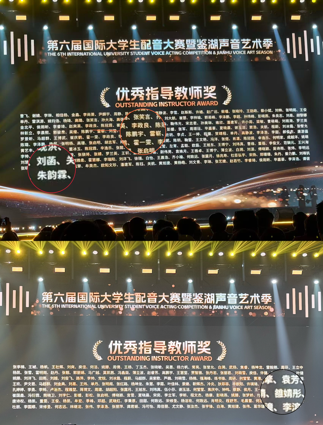 10月29日至11月1日为期四日的第六届国际大学生配音大赛暨鉴湖声音艺术季在浙江绍兴柯桥圆满落幕。作为践行习近平文化思想、促进文明互鉴的重要平台,本届赛事吸引了437所院校提交各类作为15618件,创历年新高,传媒与演艺学院学子凭借扎实功底与创意表达入围复赛,并一举斩获广告赛道2个三等奖、动漫游戏赛道1个三等奖、纪录片赛道1个三等奖,播音与主持教研室陈鹏宇、雷崭、朱韵霖、雒靖彤获“优秀指导教师”称号,成都文理学院获“最佳组织奖”。该活动由微影星火数字产业学院大力支持,支持教师参与赛事同期举办的国际学术研讨会。