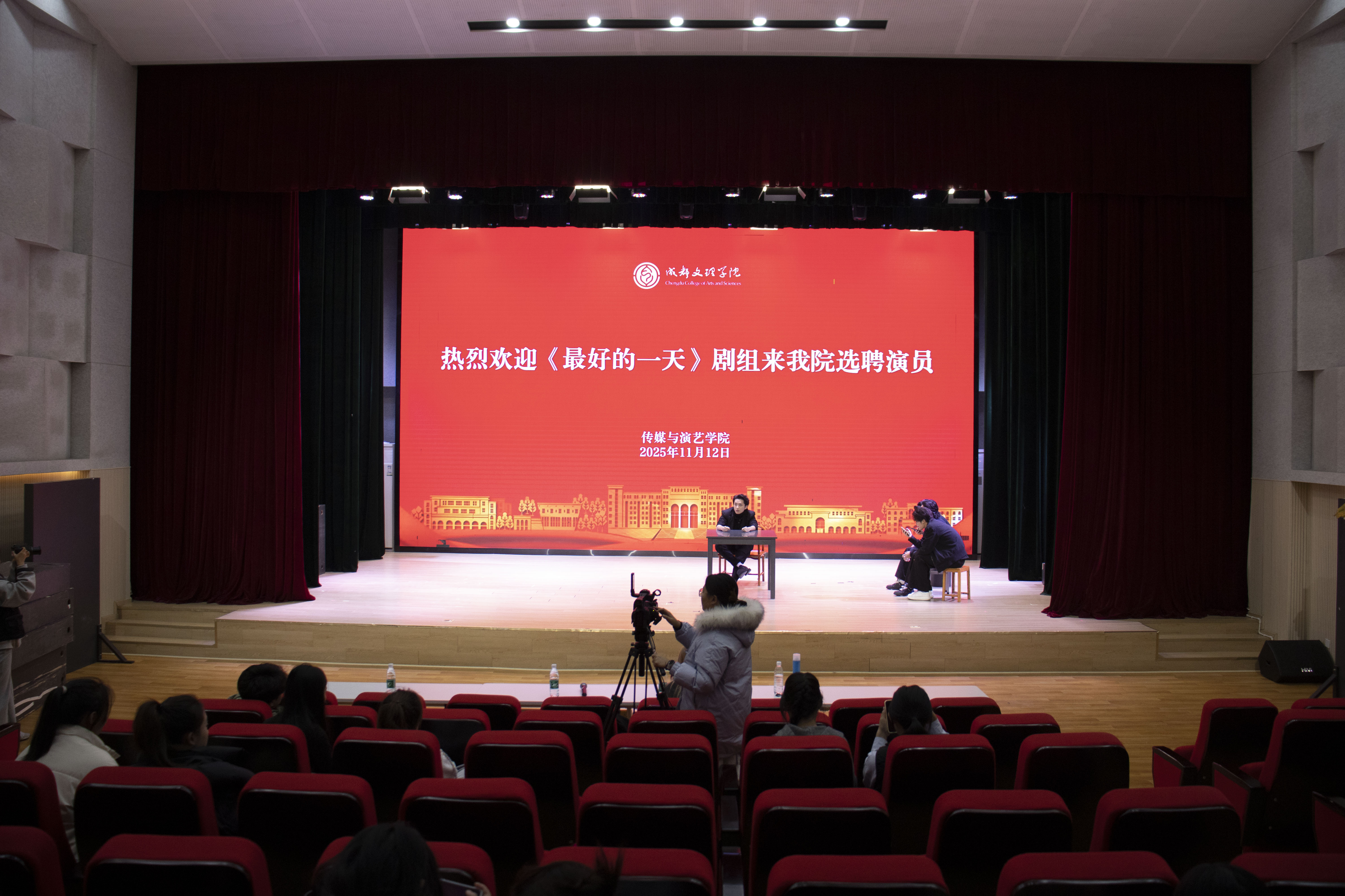 《最好的一天》由爱奇艺出品,由没筷子影视、上狮文化联合出品,吕行导演、马伪八编剧,以其独特的剧情设定和制作班底备受关注。选拔现场,传媒与演艺学院的学子们踊跃参与,充分展现了表演、播音与主持艺术、广播电视编导等专业的扎实功底与艺术表现力。同学们在镜头前自信从容,通过即兴表演、台词展示等环节,向剧组评委们展现了自己的专业素养与个人魅力。学院长期以来注重实践教学,通过与影视剧组、行业平台的深度合作,不断拓宽学生的就业发展渠道,致力于培养兼具专业能力与实践经验的演艺人才。