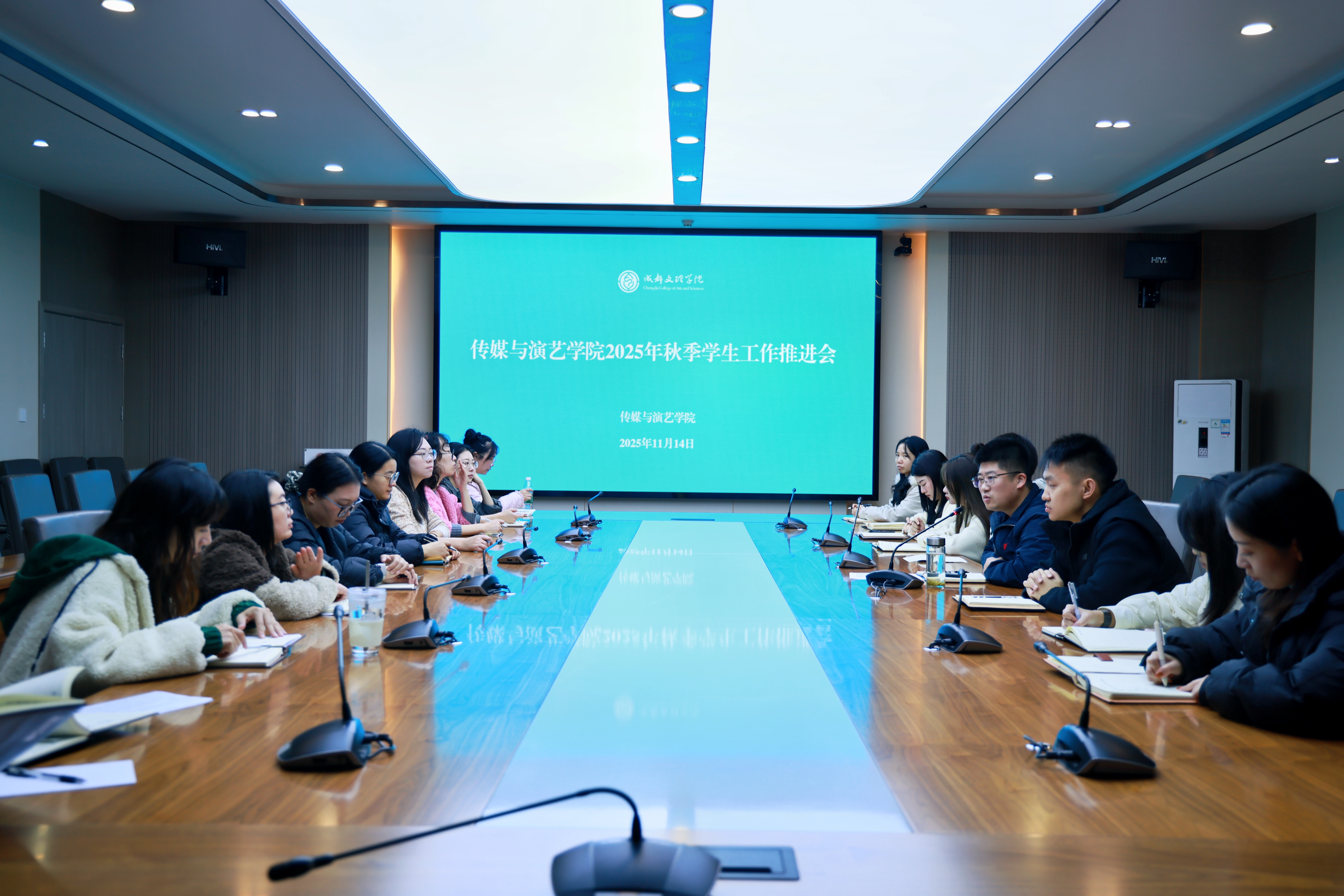 为全面提升学生工作队伍的专业能力与育人水平,进一步推动课程思政建设走深走实,2025年11月14日上午9时,传媒与演艺学院在行政楼第二会议室组织召开2025年秋季学期学生工作推进会。学院党委书记韩杰、学生工作办公室主任李界辰以及全体辅导员参加会议。