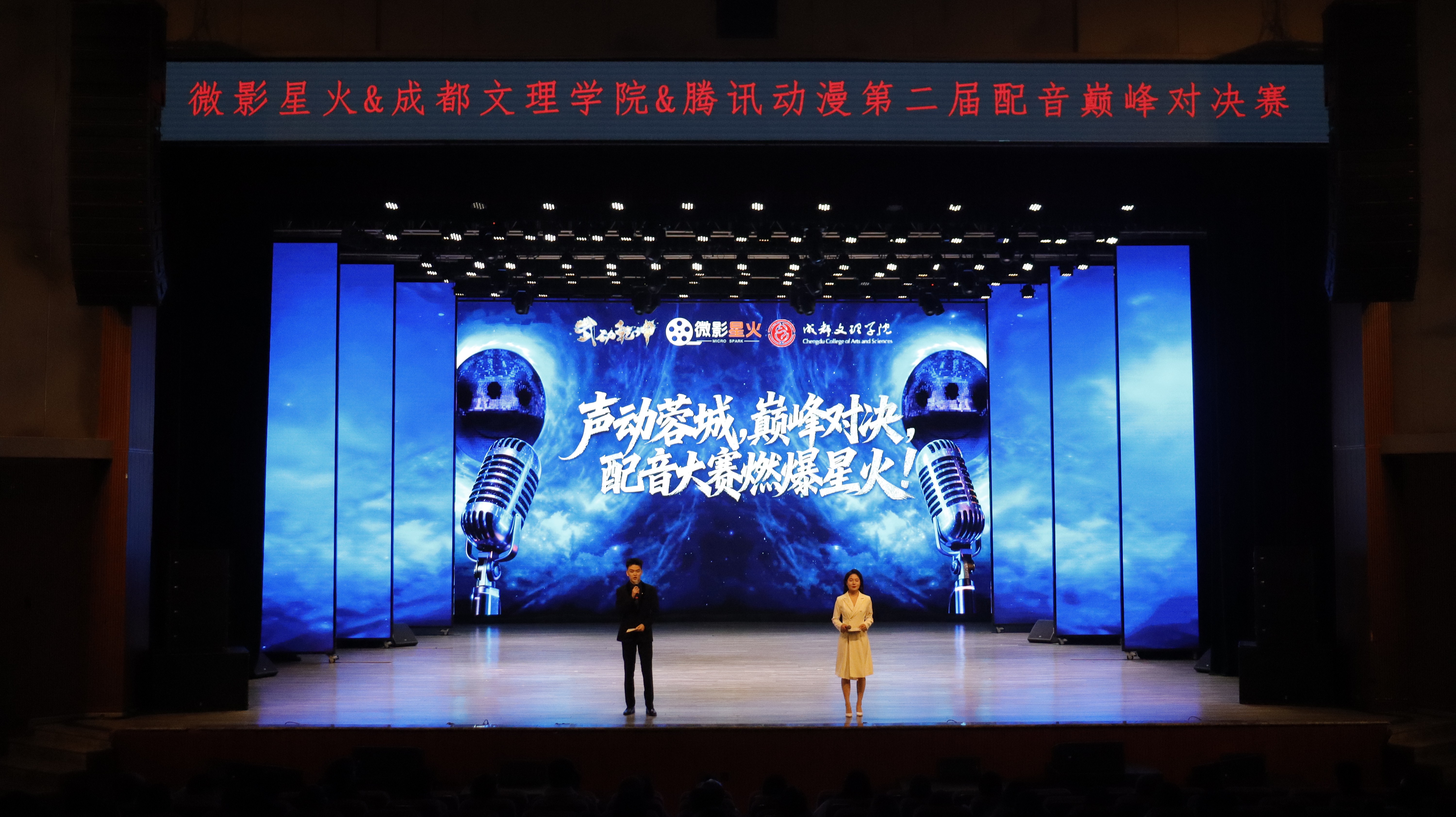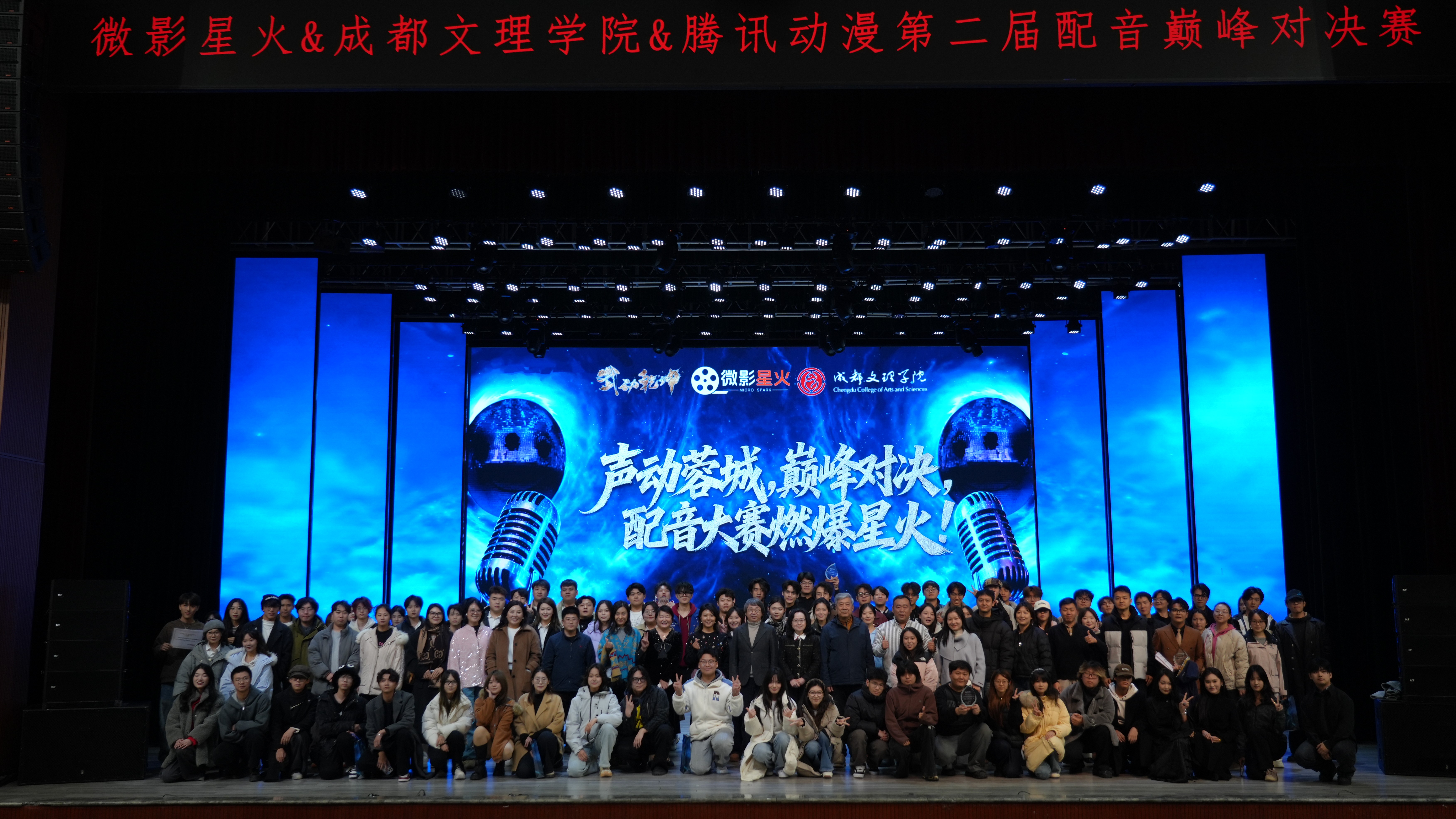 为提升学生专业实践能力与舞台表现力,搭建高校交流互鉴的平台。2025年11月21日下午13:30,由微影星火数字传媒产业学院主办,成都文理学院传媒与演艺学院承办的第二届配音巅峰对决活动在成都文理学院星空剧场顺利举行。传媒与演艺学院院长许春林、党委书记韩杰、院长助理曹飞越,微影星火数字传媒产业学院张立言老师及师生代表800余人参加此次活动。本次活动特邀著名配音演员、朗诵解说艺术家、资深配音导师周扬,国家一级配音演员陈红,资深播音员、主持人、配音员、配音导师孙大海,中国内地配音演员、导演李霞,演员、配音员、配音导师孙丽娜,资深动漫音乐监制、歌曲制作人梁潇担任评委。