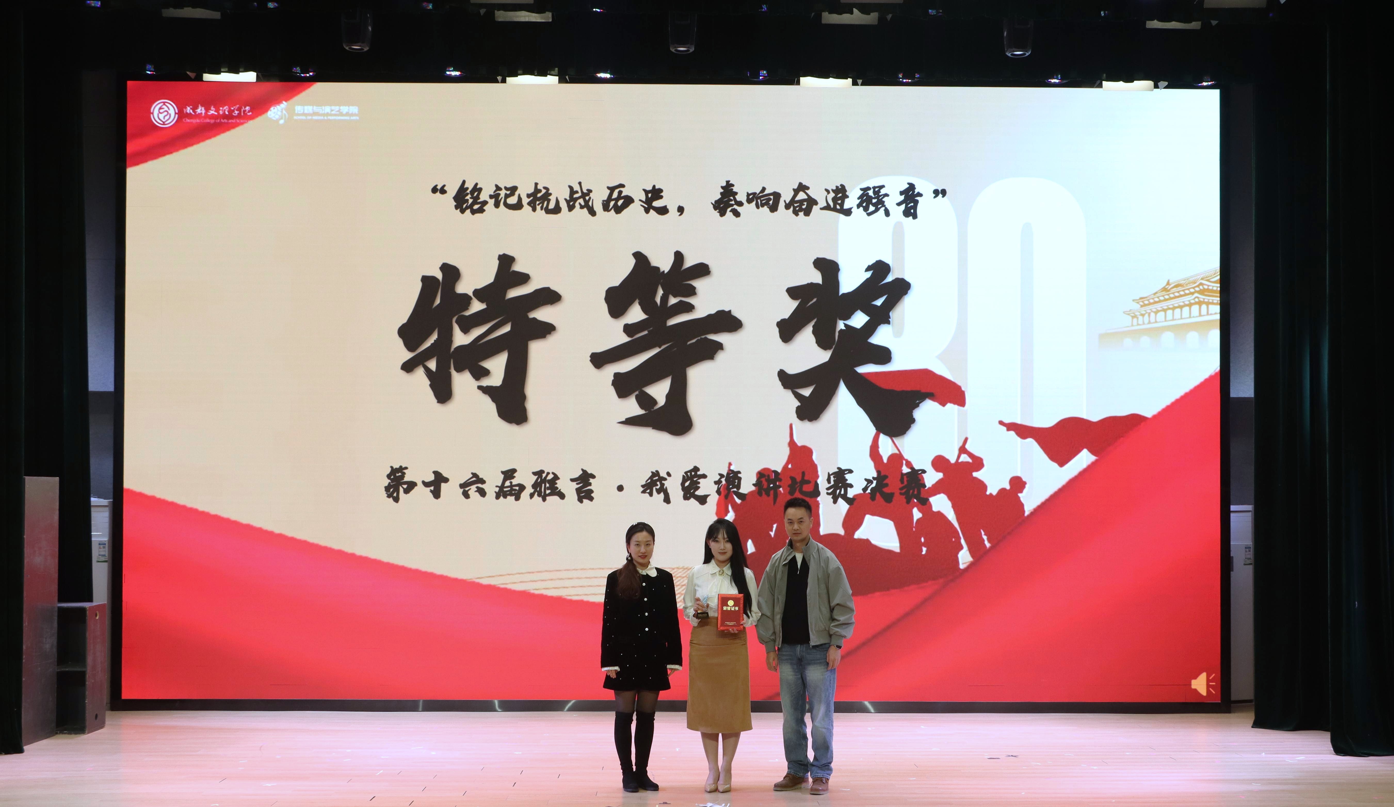 为铭记革命先烈,传承不朽抗战精神。传媒与演艺学院于2025年11月26日18:00,在艺术楼附楼102举行第十六届雅言·我爱演讲比赛决赛。出席本次比赛的领导和嘉宾有传媒与演艺学院党委书记韩杰、学工办主任李界辰以及辅导员老师和大一、大二学生代表。担任本次比赛的评委有播音与主持艺术教研室专职教师徐晓雯、吕永杰、表演教研室专职教师张海涛。