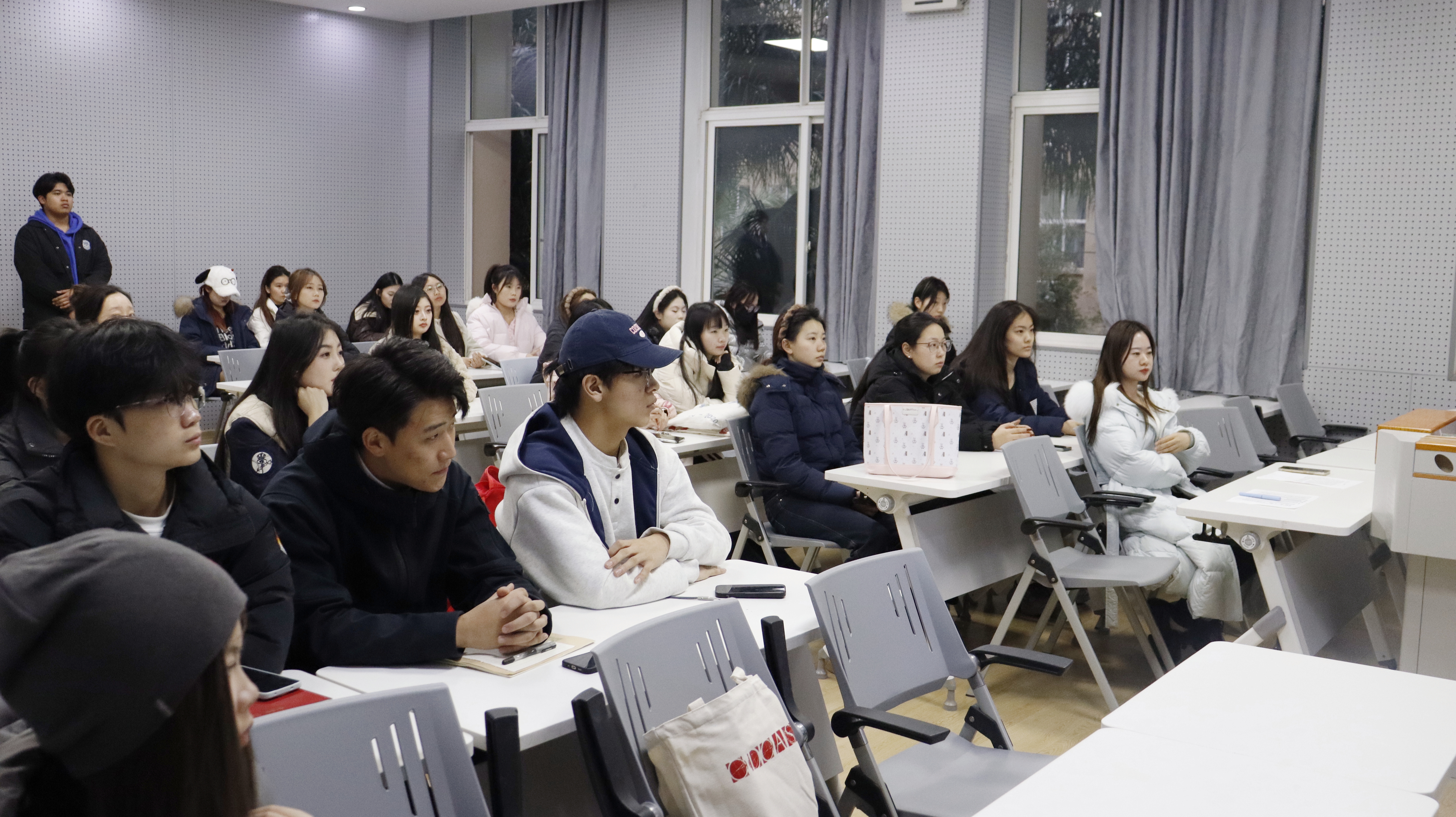 为鼓励学生感恩母校、搭建校内外宣传沟通桥梁,2025年12月24日17:30,传媒与演艺学院于主教C208举行“寒假母校行”活动启动仪式。传媒与演艺学院学工办主任李界辰、招生学生团队指导老师赵月、招生联络员张倩及学生代表参加仪式。